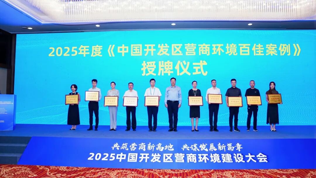 9月7日,2025年中国开发区营商环境建设大会在厦门召开。作为第二十五届中国国际投资贸易洽谈会的系列活动,大会以“共筑营商新高地、共谋发展新篇章”为主题,现场发布“2025年中国开发区营商环境百佳案例”并集中授牌。其中,经开区报送的《以咨询引导为突破口、打造主动服务新标杆》案例,从全国众多参评案例中脱颖而出,成功入选。经开区党工委委员、管委会副主任秦军代表经开区上台领奖。